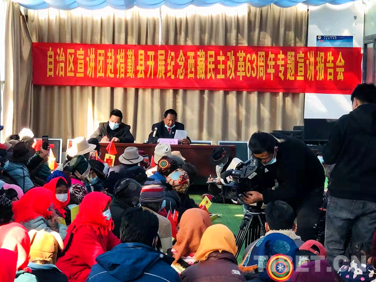 中國西藏網(wǎng)訊 3月26日,西藏自治區(qū)宣講團(tuán)在阿里地區(qū)措勤縣扎日南木措社區(qū)黨群活動中心開展紀(jì)念西藏民主改革63周年專項(xiàng)宣講。扎日南木措社區(qū)黨群活動中心約200多名群眾參加。