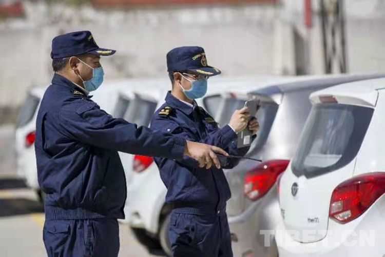 圖為拉薩海關全力保障出口工程車輛自西藏吉隆口岸快速通關 圖片由拉薩海關提供