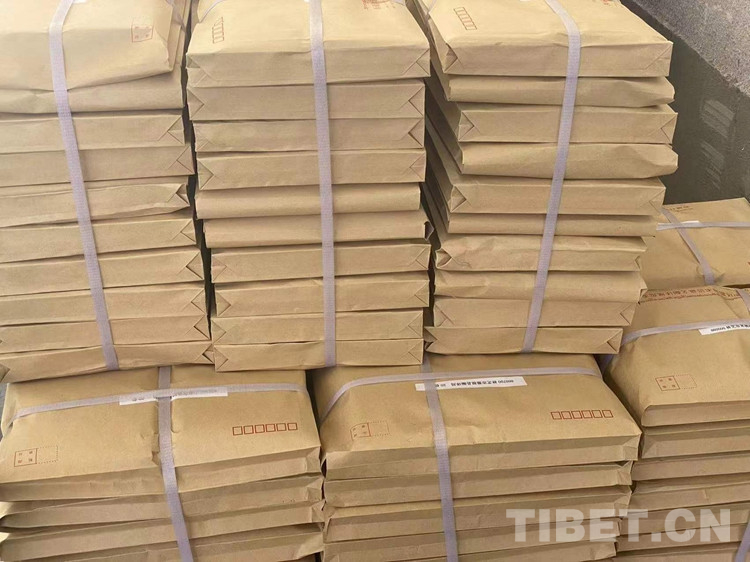 圖為工作人員正在打包發往基層的《漢藏對照術語規范明鏡》(2021)