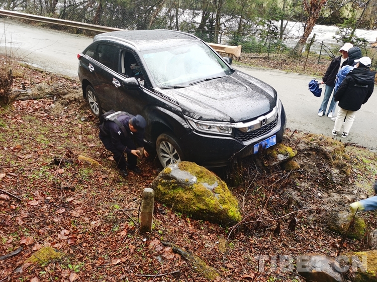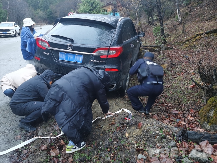 “我們是第一次遇到這種情況,不知道怎么辦,只有請求你們幫助!”當地近期降雨較多、道路濕滑,兩名廣東籍女游客在南伊風景區內游玩返回途中操作不慎,導致車輛發生側滑,撞在路邊石頭上,無法自行脫困。不熟悉當地情況的游客,在雨中焦急無助,撥打報警求助。