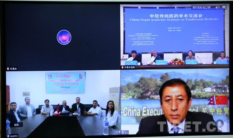 中國西藏網訊 為增進中尼兩國傳統醫藥領域學術交流合作,在尼泊爾中國經濟貿易協會的支持下,5月27日,中國西藏自治區人民對外友好協會會同西藏自治區藏醫院、尼泊爾阿育吠陀研究和培訓中心,以視頻連線方式聯合舉辦“中尼傳統醫藥學術交流會”。