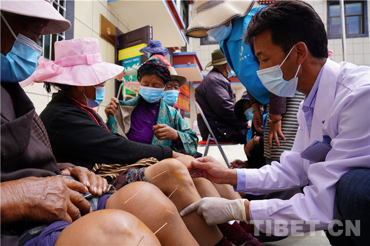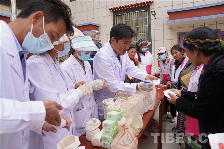 義診中,瓊結縣衛健委(藏醫醫院)醫療健康志愿隊耐心接待每位前來咨詢的農牧民群眾,悉心為農牧民群眾診斷病情。