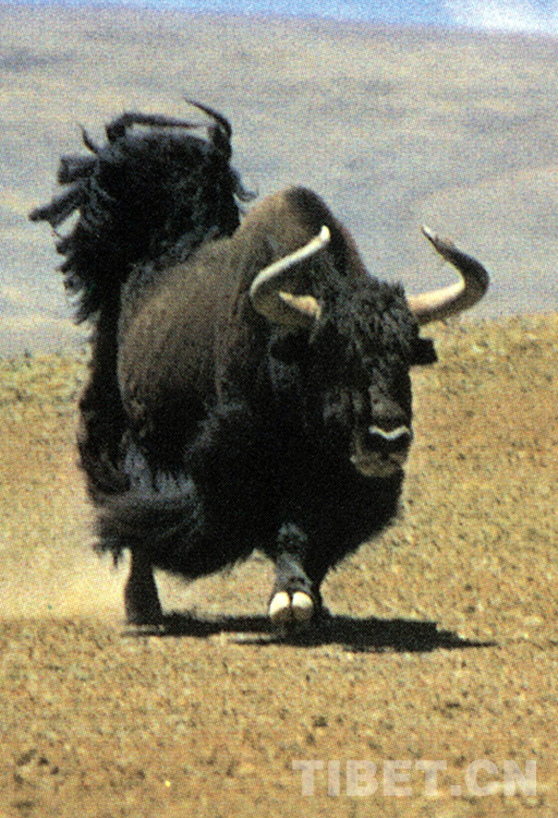 野牦牛桀驁不馴,性情勇猛蠻橫,不畏任何強暴。在藏北無人區少有對手能與之匹敵。