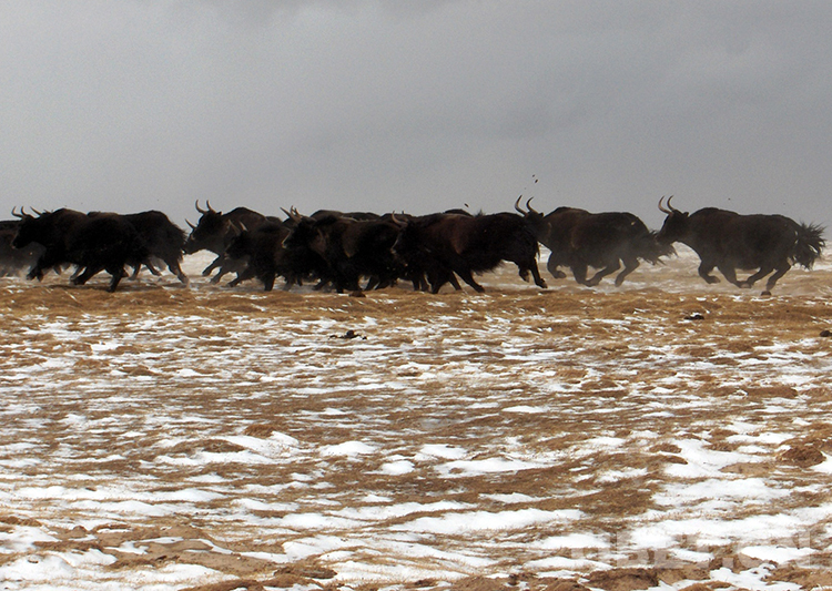 這是奔跑在羌塘國家級自然保護區的國家一級保護動物野牦牛(唐召明2009年攝)