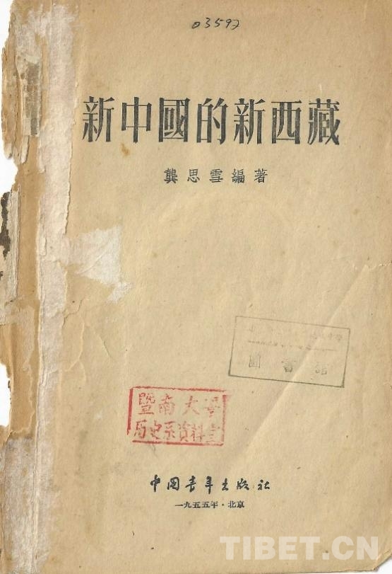 6月下旬,我們結束畢業實習返校。就在回到學校的當天,我鬼使神差地乘坐公共汽車去了廣州中山路上的一家舊書店,并如獲至寶般地買到下面這本1955年由中國青年出版社出版的《新中國的新西藏》。