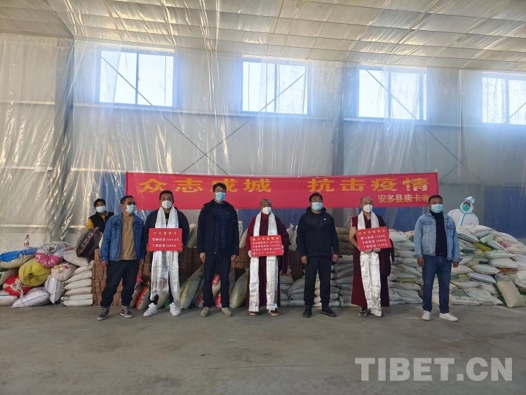 管委會副主任、寺廟僧人土旦仁青帶著寺廟和廣大僧眾的一片心意前往縣城,在縣疫情防控辦、縣委統戰部、縣商務局等有關部門的安排下把寺廟集體和廣大僧眾捐贈的資金和一輛裝滿生活物資的大車送到了縣疫情防控后勤保障組,縣疫情防控后勤保障組組長、政府副縣長次仁桑珠受那曲市政協副主席、安多縣委書記高軍濤的委托,代表安多縣人民政府接收了捐贈。土旦仁青表示,唐卡寺在安多縣委、縣政府的堅強領導下,落實“三個暫?!钡确揽卮胧?,保障了全寺僧眾的生命安全和身體健康,代表全寺僧眾向縣委、縣政府以及廣大黨員干部、醫護人員、公安干警和志愿者們表示衷心的感謝。
