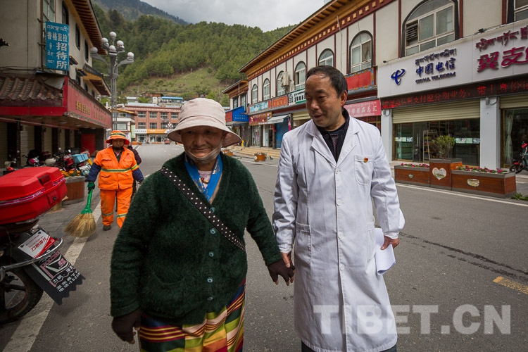 圖為藏族阿媽和漢族醫(yī)生在亞?wèn)|縣街上