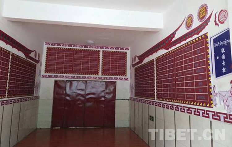 圖為西藏自治區那曲市比如縣羊秀鄉小學為了幫助孩子們隨時隨地學好藏語敬語,精心布置了敬語專欄 攝影:米瑪旺久