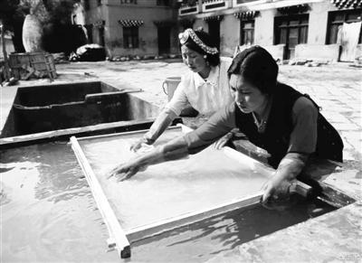 圖為制做藏紙 圖片來源:西藏商報(bào)