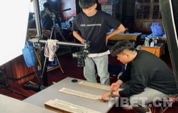 圖為2021年,西藏民族大學實習生在布達拉宮藏經閣拍攝古籍文獻
