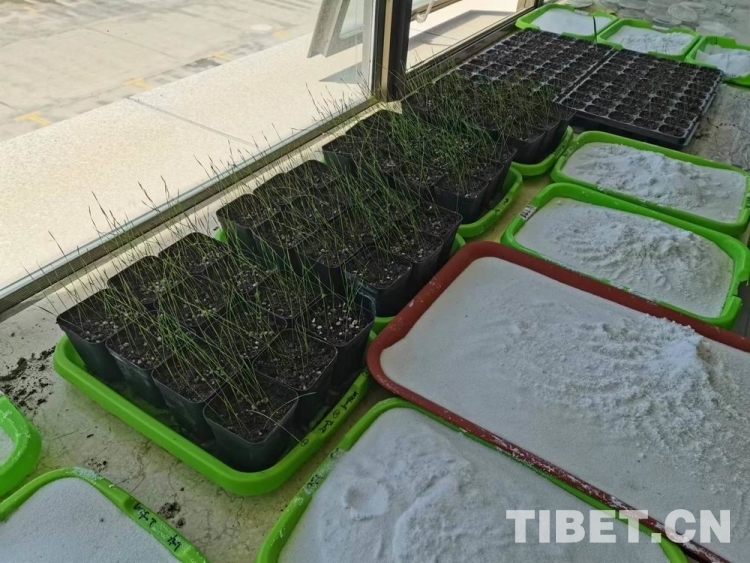 圖為西藏自治區(qū)農(nóng)牧科學(xué)院草業(yè)科學(xué)研究所科技人員在開展野生牧草抗鹽堿評(píng)價(jià)試驗(yàn)