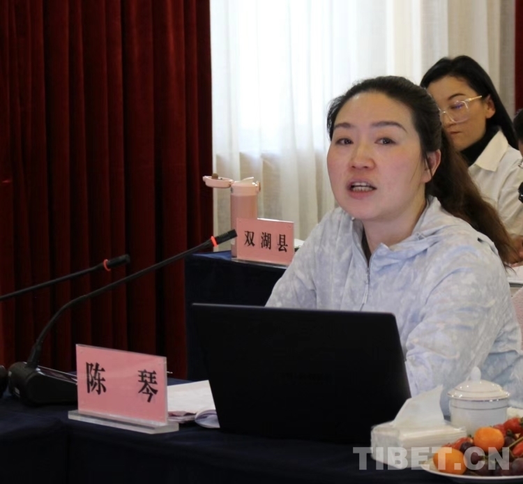 圖為中央廣播電視總臺(tái)駐西藏記者站黨委副書(shū)記、副召集人陳琴介紹融媒體相關(guān)情況