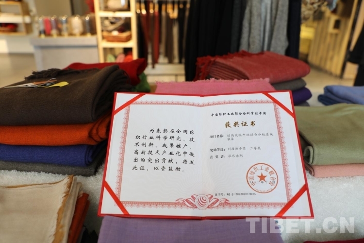 牦牛的生存環境決定了牦牛絨比普通羊毛更加保暖、柔軟,但也帶來了紡織上的技術難題。牦牛絨很細,纖維的卷曲較少并且卷曲形態不規則,成條成紗難度大。在不斷的探索中,團隊發現牦牛絨與蠶絲混紡能改善牦牛絨的可紡性,這解決了一大技術難題,公司還因此獲得知識產權專利及多項科學技術獎項。