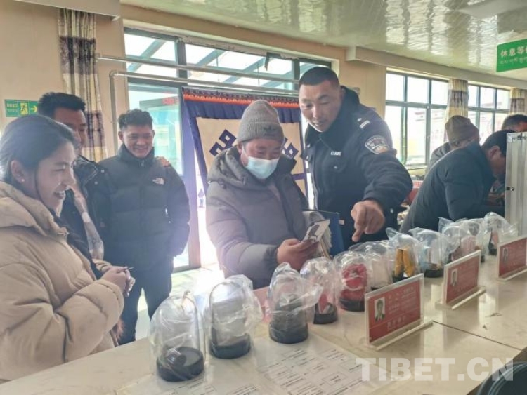 圖為那曲市色慶鄉禁毒辦民警向群眾講解毒品仿真樣品