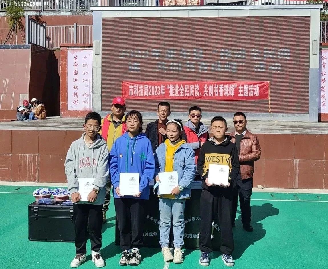 圖為日喀則市科學技術(shù)協(xié)會以科普大篷車進校園活動為契機,聯(lián)合亞東縣委宣傳部、縣科技局在縣中學舉辦的“推進全民閱讀 共創(chuàng)書香珠峰”主題宣傳活動現(xiàn)場