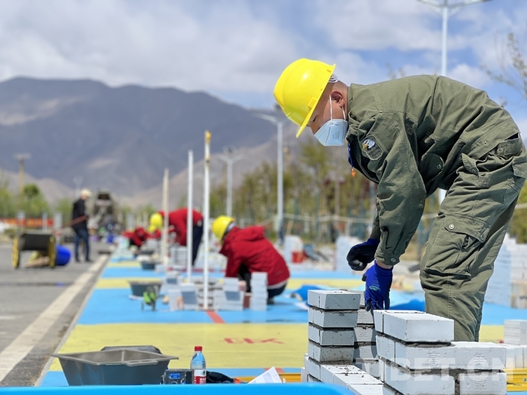 圖為參賽選手進行砌筑項目比賽 攝影:德吉卓瑪