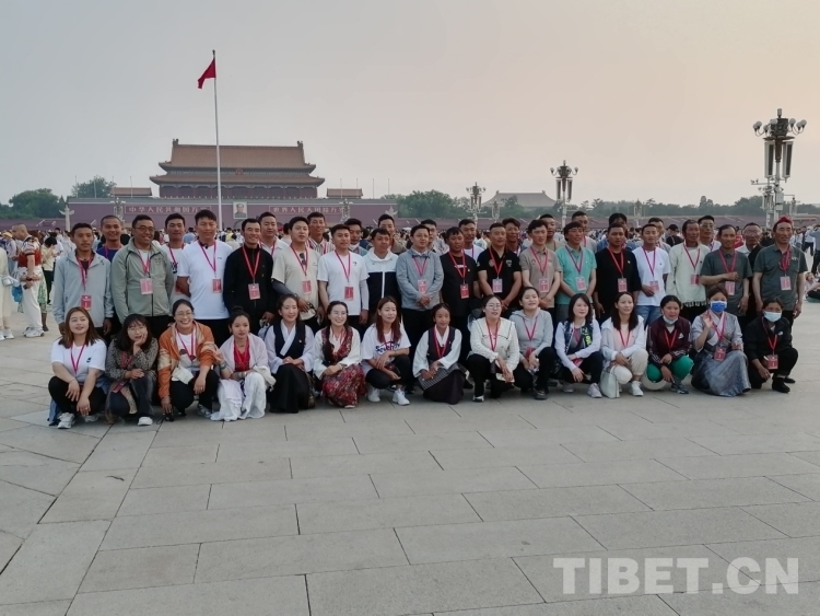 圖為西藏村居兩委基層干部赴京考察學習團6月18日在天安門廣場觀看升旗后合影 圖片由北京建藏援藏工作者協會提供