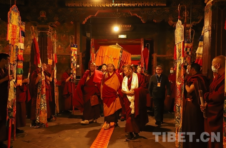 5時30分,班禪一行抵達大昭寺。頓時,法號齊鳴、法螺合奏。伴著僧人渾厚的誦經聲,在手持香爐的高僧和吹嗩吶的僧人引路下,班禪步入大昭寺,逐一朝拜寺內各殿堂。