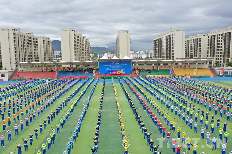 圖為2023年“奔跑吧?少年”兒童青少年主題健身活動西藏分會場啟動儀式現場 攝影:旦曲