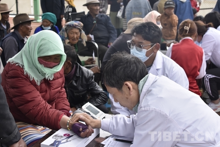 現場,義診專家為嘎瑪央吉跟她上小學的孫女進行認真細致的檢查,詳細詢問她們的日常習慣及身體狀況,并針對各自病情作出專業性診斷,不僅贈送藥品,還向嘎瑪央吉耐心講解藥品的服用方法。