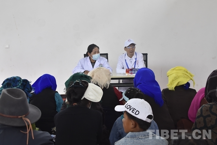 圖為7月8日,活動現場開展了骨關節炎防治健康知識講座,鄉政府還安排了一名翻譯 攝影:次旦拉姆