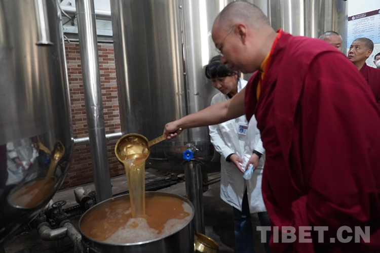 當(dāng)看到傳統(tǒng)醫(yī)學(xué)傳承及保護(hù)、整理和研究藏醫(yī)藥古文獻(xiàn)取得較好成果,班禪流露出滿意的笑容。對當(dāng)班的年輕醫(yī)護(hù)人員,班禪詢問了他們生話、學(xué)習(xí)、工作等情況,并鼓勵(lì)他們一定要以慈悲的心靈對待患者,在病房里,對患者們送去溫暖的關(guān)懷和撫慰、并給他們摸頂賜福。當(dāng)?shù)弥蒯t(yī)藥科研工作正走向健康軌道,一些藏藥專著在國內(nèi)外產(chǎn)生較大影響時(shí),班禪表示十分欣慰。