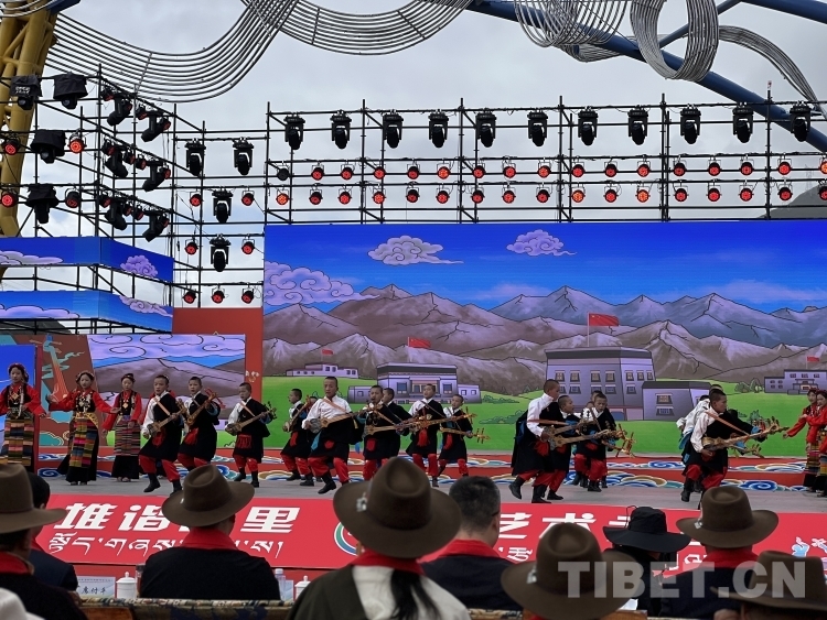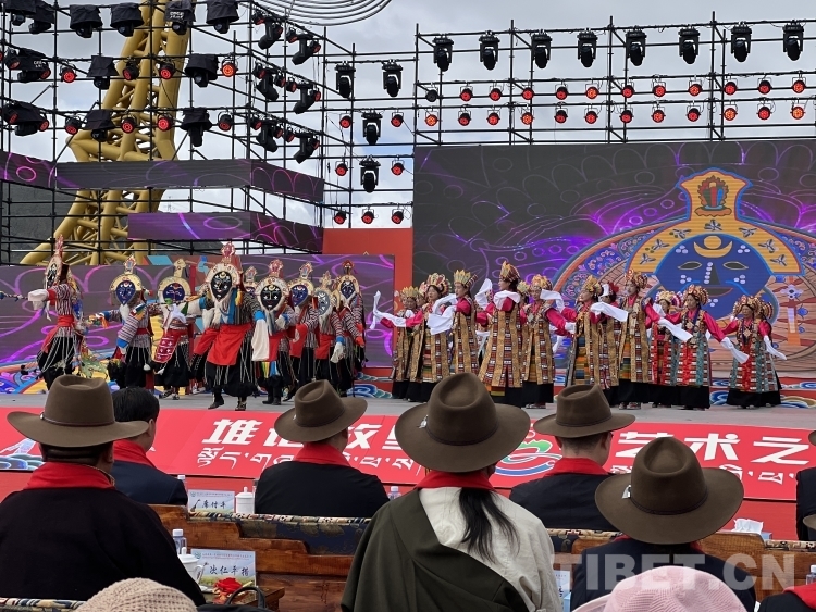 開(kāi)幕式在莊嚴(yán)的國(guó)歌聲中拉開(kāi)序幕。開(kāi)幕式文藝演出聚焦“堆諧故里,藝術(shù)之鄉(xiāng)”,由拉孜縣藝術(shù)團(tuán)、民間業(yè)余演出隊(duì)、九大藏戲隊(duì)、少兒藝術(shù)隊(duì),芒普鄉(xiāng)、扎西崗鄉(xiāng)、柳鄉(xiāng)藝術(shù)隊(duì)演出藏戲、堆諧、諧欽(“諧”藏語(yǔ)意為歌舞,“欽”即盛況或隆重之意)、洛諧(定日縣為主的南部歌舞)、果諧(圓圈舞)以及區(qū)內(nèi)知名歌手演唱歌曲組成。整個(gè)演出融合傳統(tǒng)民族非遺文化與現(xiàn)代歌舞元素,演出內(nèi)容既富有傳統(tǒng)特色又極具時(shí)代魅力,充分展示了拉孜各族人民昂揚(yáng)向上、團(tuán)結(jié)奮進(jìn)、開(kāi)放包容的精神面貌。