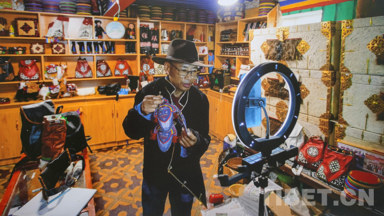 圖為第十六屆西藏“珠穆朗瑪”攝影大展上攝影家扎頓所參展的《謝通門縣皮具電商網紅》 翻拍:王淑