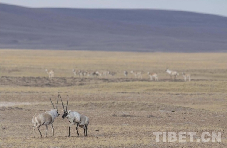 圖為羌塘自然保護區內,正在決斗的兩只強壯的公藏羚羊。 攝影:達瓦次仁