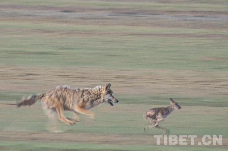 圖為在羌塘自然保護區,野狼正在捕食弱小的藏羚羊。攝影:達瓦次仁