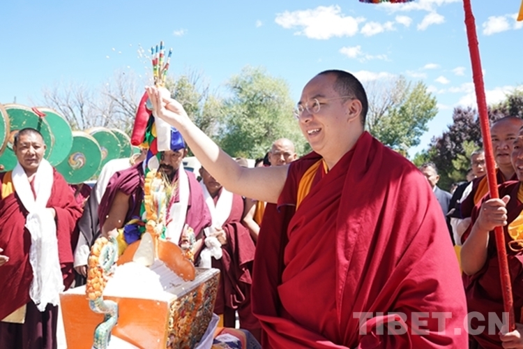 班禪一行順利抵達后,現場桑煙繚繞、法號長鳴,扎什倫布寺高僧代表向班禪敬獻哈達,班禪向僧眾及在此等候的信眾們揮手致意。隨后,班禪在手持黃傘、香爐的高僧引領下徐徐而行,經多加大院進入措欽大殿。