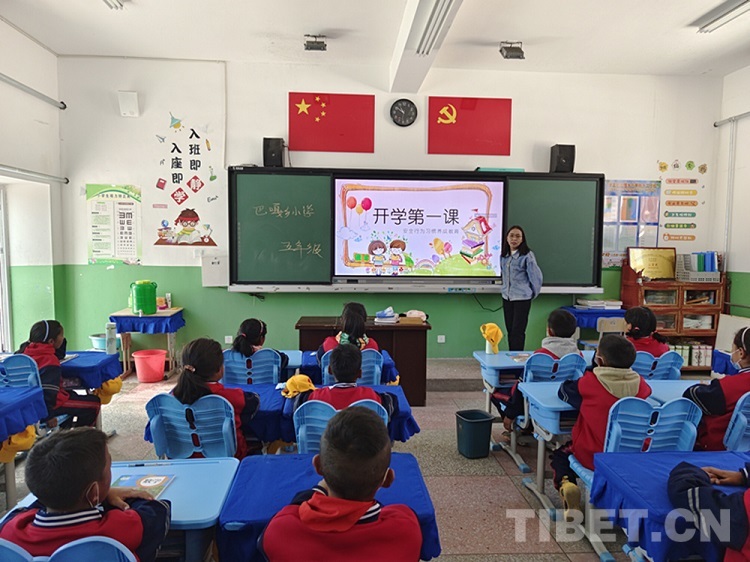 圖為巴嘎鄉小學開學第一課 圖片由西藏民族大學財經學院提供