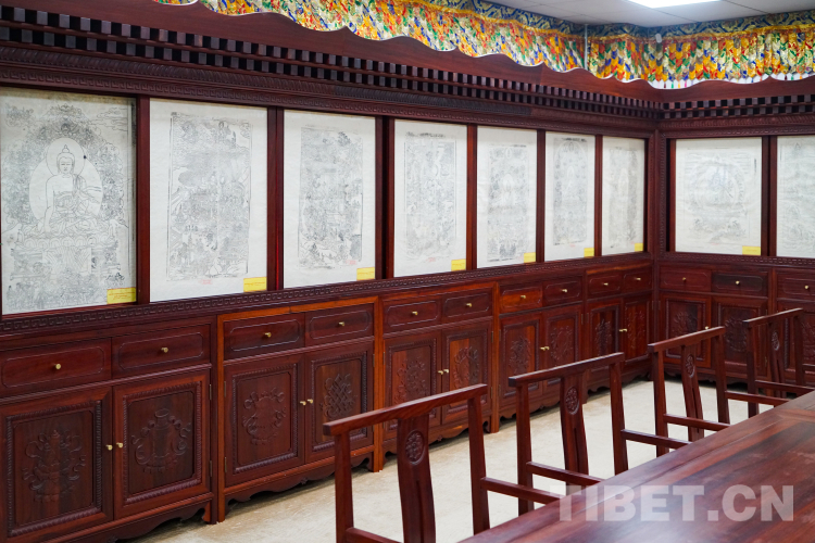 圖為西藏民族大學渭城校區新圖書館內的藏學信息研究中心所展陳的木刻版畫 攝影:趙振宇