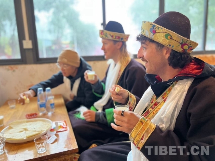圖為外籍運動員正在品嘗甜茶、酥油茶 攝影:德吉卓瑪