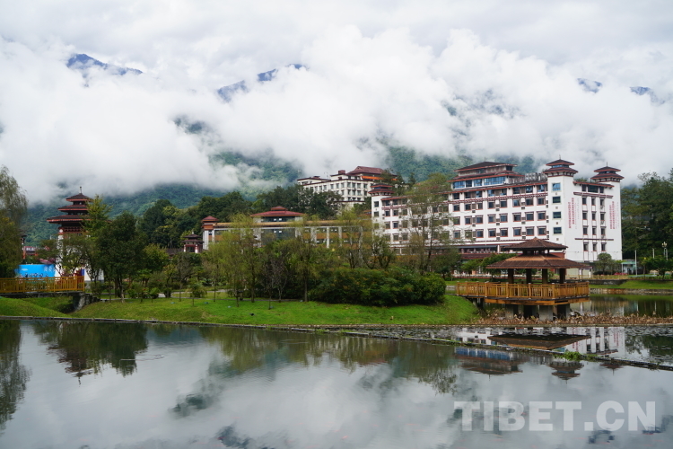 從福建援藏到廣東援藏,墨脫縣城的迅速發展離不開援藏兄弟省份不遠千里深入喜馬拉雅腹地,走進這朵圣地蓮花。蓮花圣地公園是每一個來墨脫縣旅游的人必打卡的地方,這里曾經是一片沼澤地,在廣東省第七批援藏工作隊的規劃和建設下于2016年4月竣工,如今有湖泊、曲廊、涼亭、籃球場等齊全的基礎設施和園林景觀,成為了游客和當地人休閑的好去處。夜幕降臨,蓮花圣地公園內的景觀燈倒映在湖泊當中,一位來自四川的游客一邊拍照一邊和同行伙伴說“這里巴適得很。”