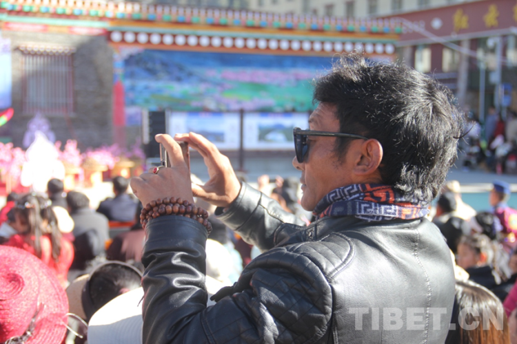 圖為開幕式現場市民在直播 攝影:次旦拉姆