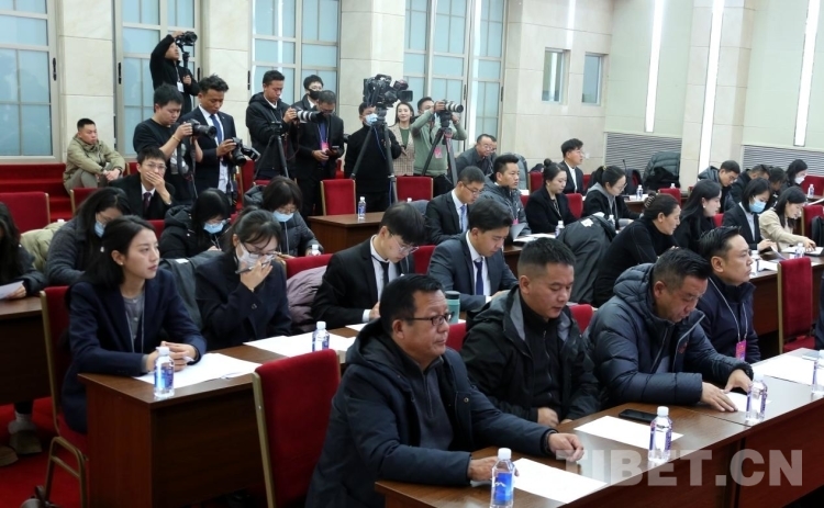 圖為中央駐藏媒體及西藏自治區媒體代表在會上認真聽取新聞發言人通報相關情況 攝影:王佳豪