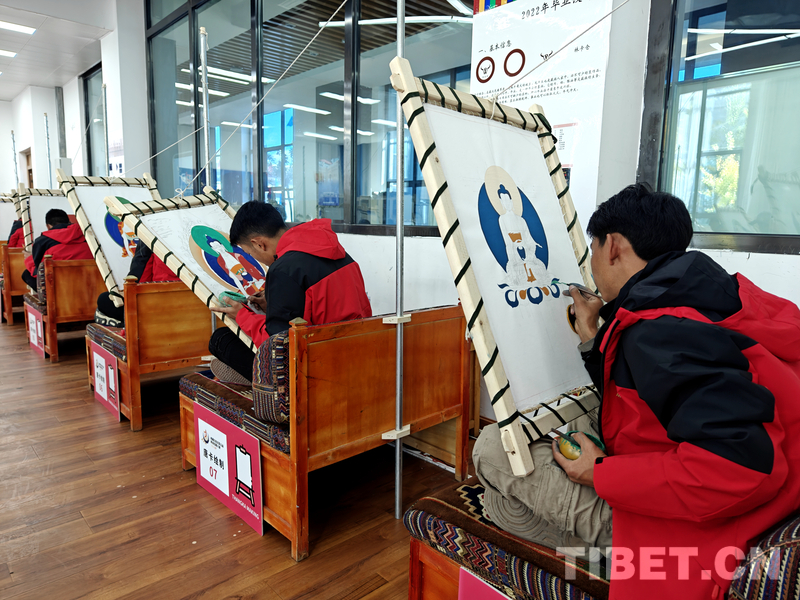 資料圖:西藏自治區第五屆職業技能大賽唐卡繪制組選手正在比賽