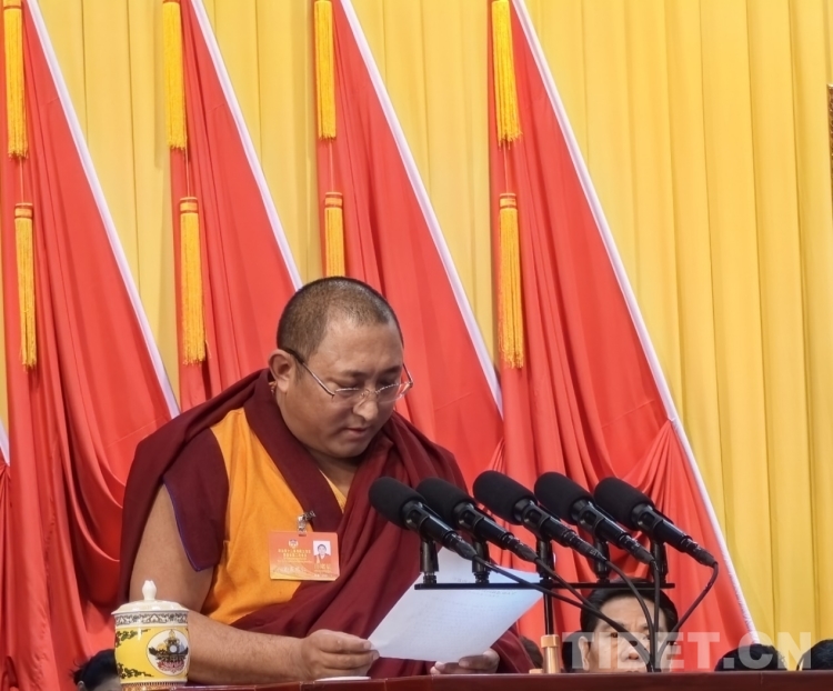 圖為宗教界政協委員拉巴次仁發言 攝影:王淑