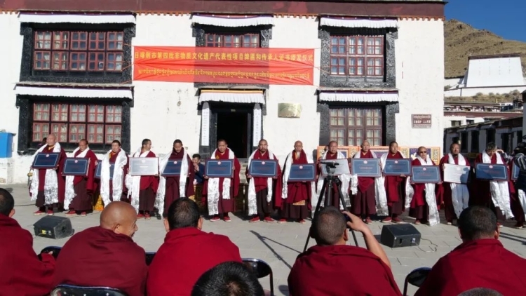 此次公布的第四批日喀則市級(jí)非遺代表性項(xiàng)目202項(xiàng)、代表性傳承人223項(xiàng),其中僅扎什倫布寺就有126個(gè)項(xiàng)目和142名傳承人。(中國西藏網(wǎng) 記者/趙振宇 圖片源自文化日喀則微信公眾號(hào))