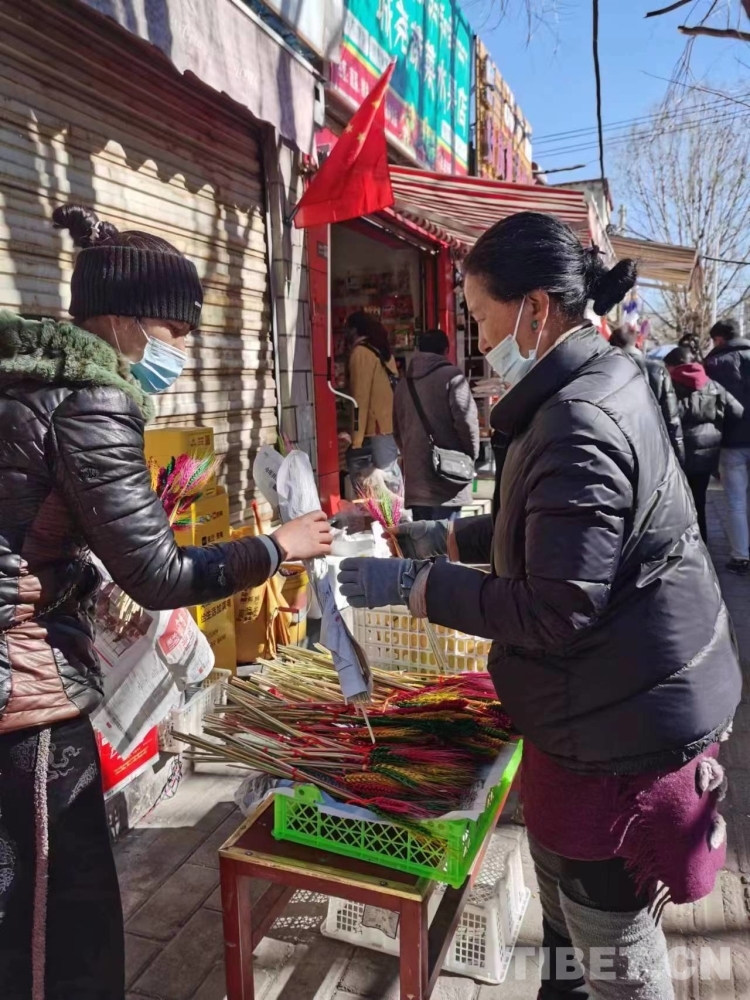 圖為藏歷新年之前顧客在購(gòu)買五彩青稞穗 攝影:巴桑