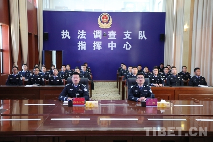 圖為西藏邊檢總站執法調查支隊各級民警集中收看開幕會