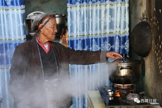 圖為山南市貢嘎縣杰德秀鎮果吉村村民在使用新式高壓鍋時,單手撥動鍋蓋上的泄壓閥排放鍋里的氣體。圖片來源于西藏日報