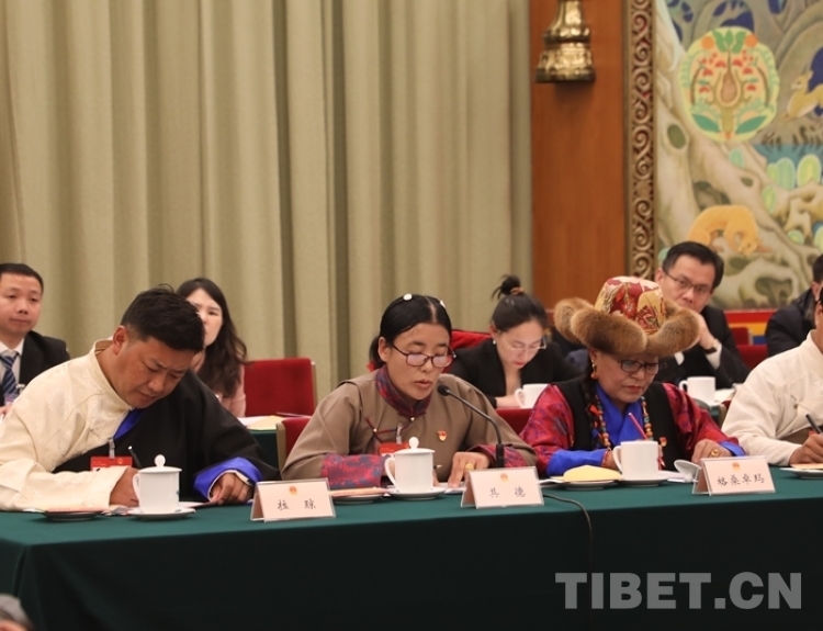 圖為其德在十四屆全國人大二次會議西藏代表團開放團組會議上發言 攝影:桑吉