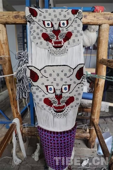 圖為搭在傳統木質織架上的藏毯制品 攝影:王茜