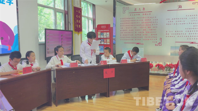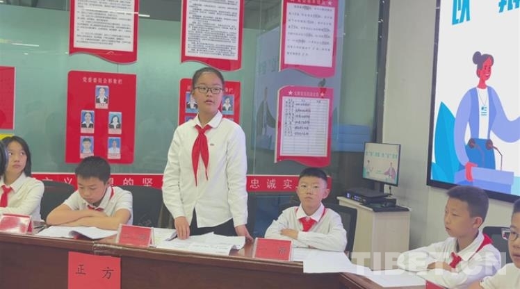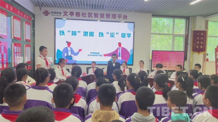 中國西藏網訊 4月19日,青海省西寧市海湖新區的文亭巷社區活動室里,傳出稍顯稚嫩卻有力的聲音:“今天我們辯論的題目是:中小學生應不應該使用電子產品。下面介紹雙方辯手……”這是文匯小學五年級二班的學生在此開展辯論賽。