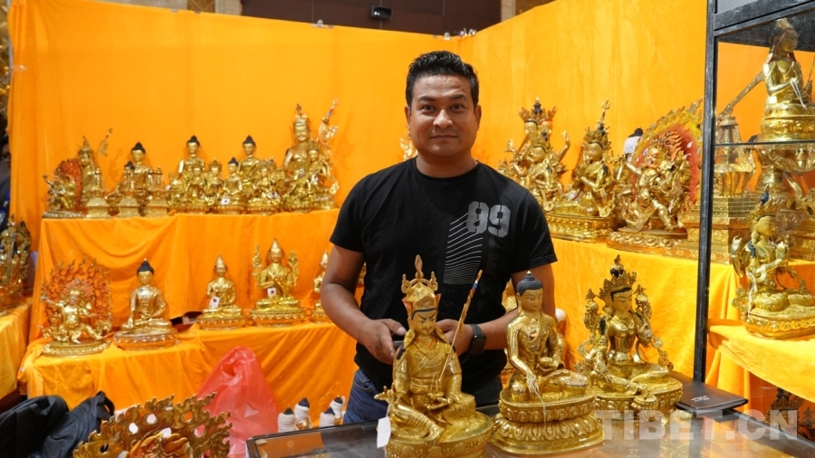 Bikram來自尼泊爾首都加德滿都,十年前來過拉薩,深深被這座城市所吸引,這次通過中外商品展銷會再次來到一直向往的拉薩,他非常開心。“我們尼泊爾的手工藝品在全世界出名,這次我們從尼泊爾帶來的有唐卡、佛像、毛毯等,都是全手工制作的,希望在此次展銷會能夠得到西藏消費者的支持與喜愛。”