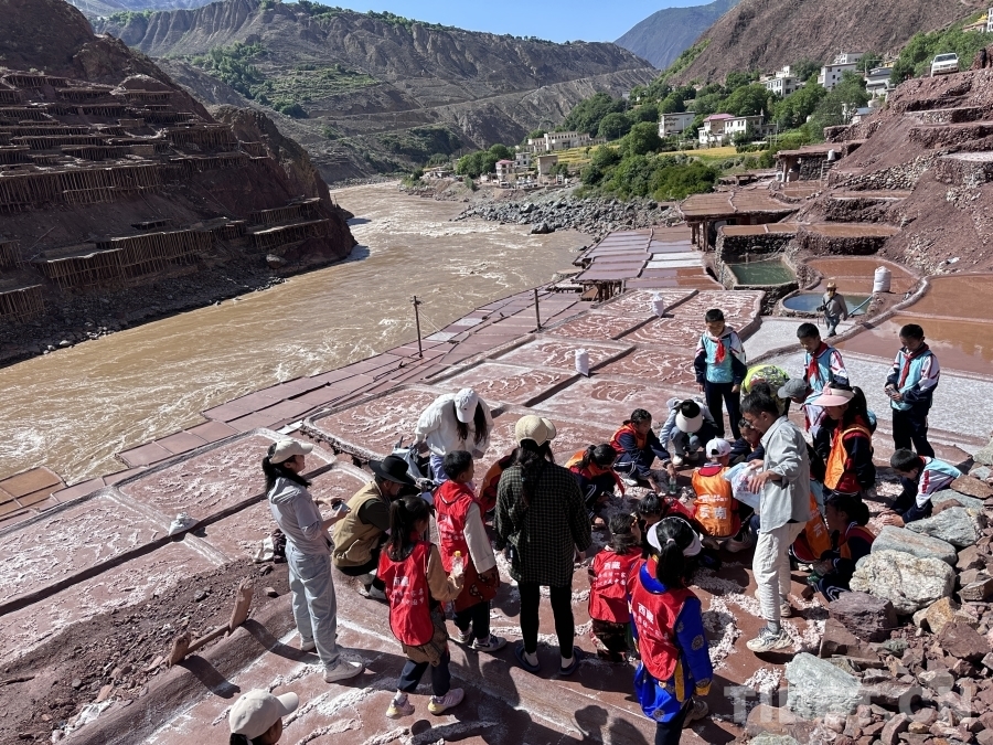 圖為學(xué)生們在古鹽田體驗和感受古老的制鹽文化