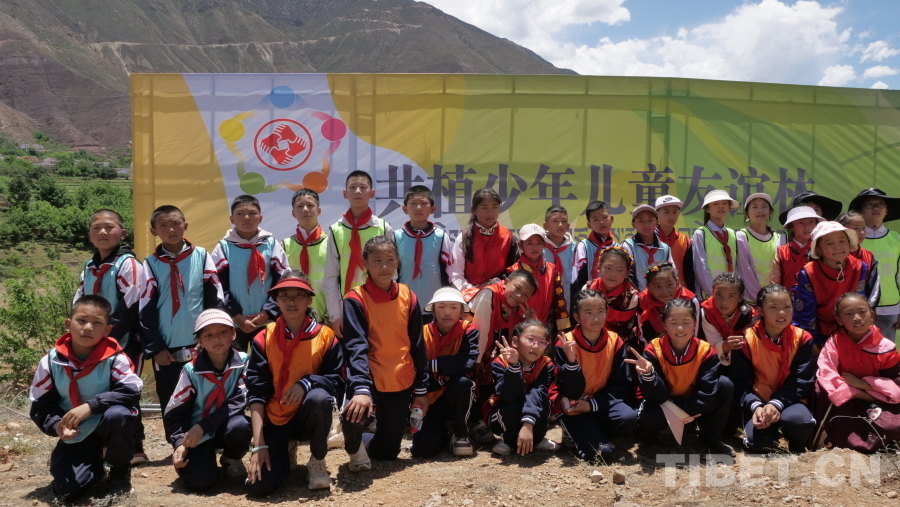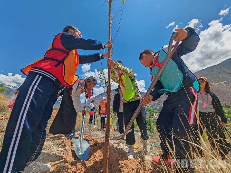 圖為四省(區(qū))市學(xué)生們在西藏昌都的土地上共同植樹