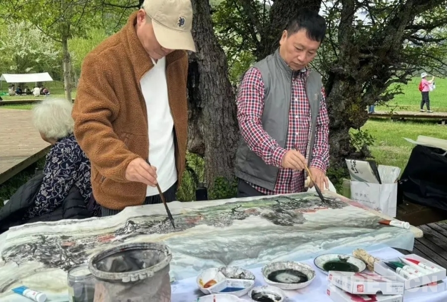 悠揚的樂聲自林間傳來,沿著步道往深處走去,一場特別的演奏會正在進行。枝頭海棠盛放,樹下游人如織,鋼琴、大提琴、笛子等各色樂器奏出的曲調在貢嘎海棠的映襯下更顯別樣風味,來自西安的韓先生細細聆聽木雅傳統(tǒng)非遺口弦的演奏后不禁感嘆道,“太美了!這個活動將音樂與貢嘎海棠花海巧妙融合,讓我感受到一種別樣的人與自然共生的和諧。”